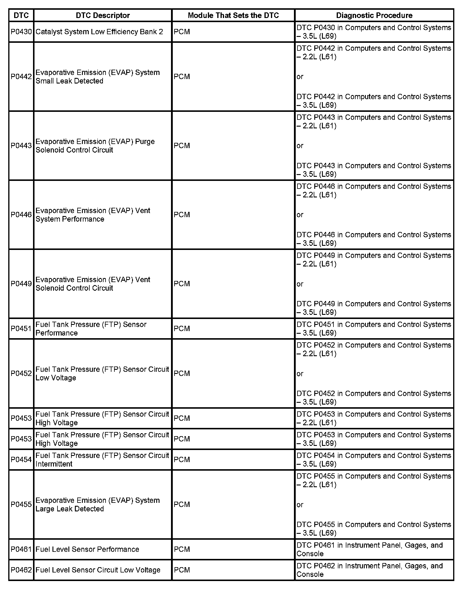 DTC's P0430-P0462: