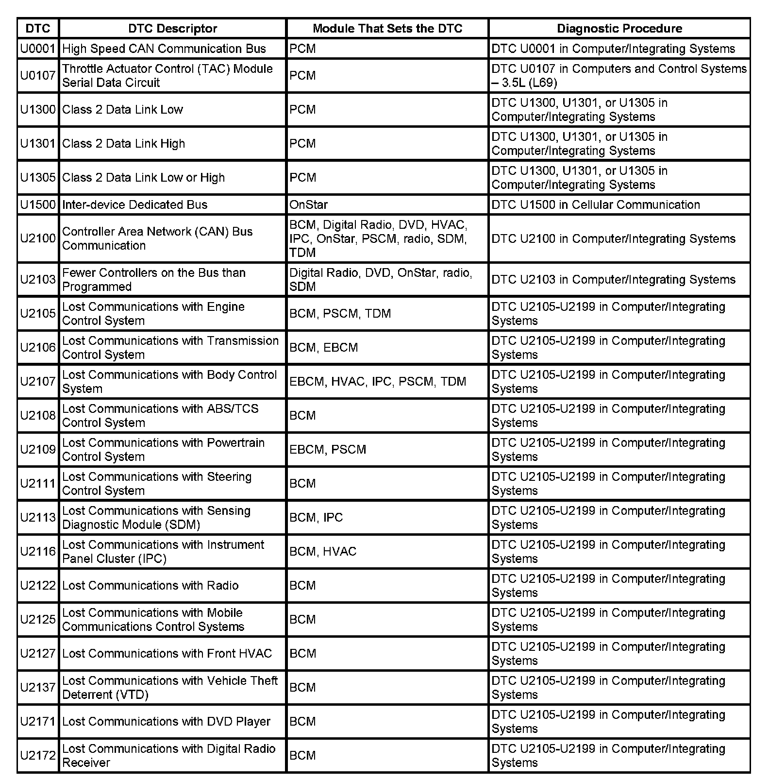 DTC's U0001-U2172: