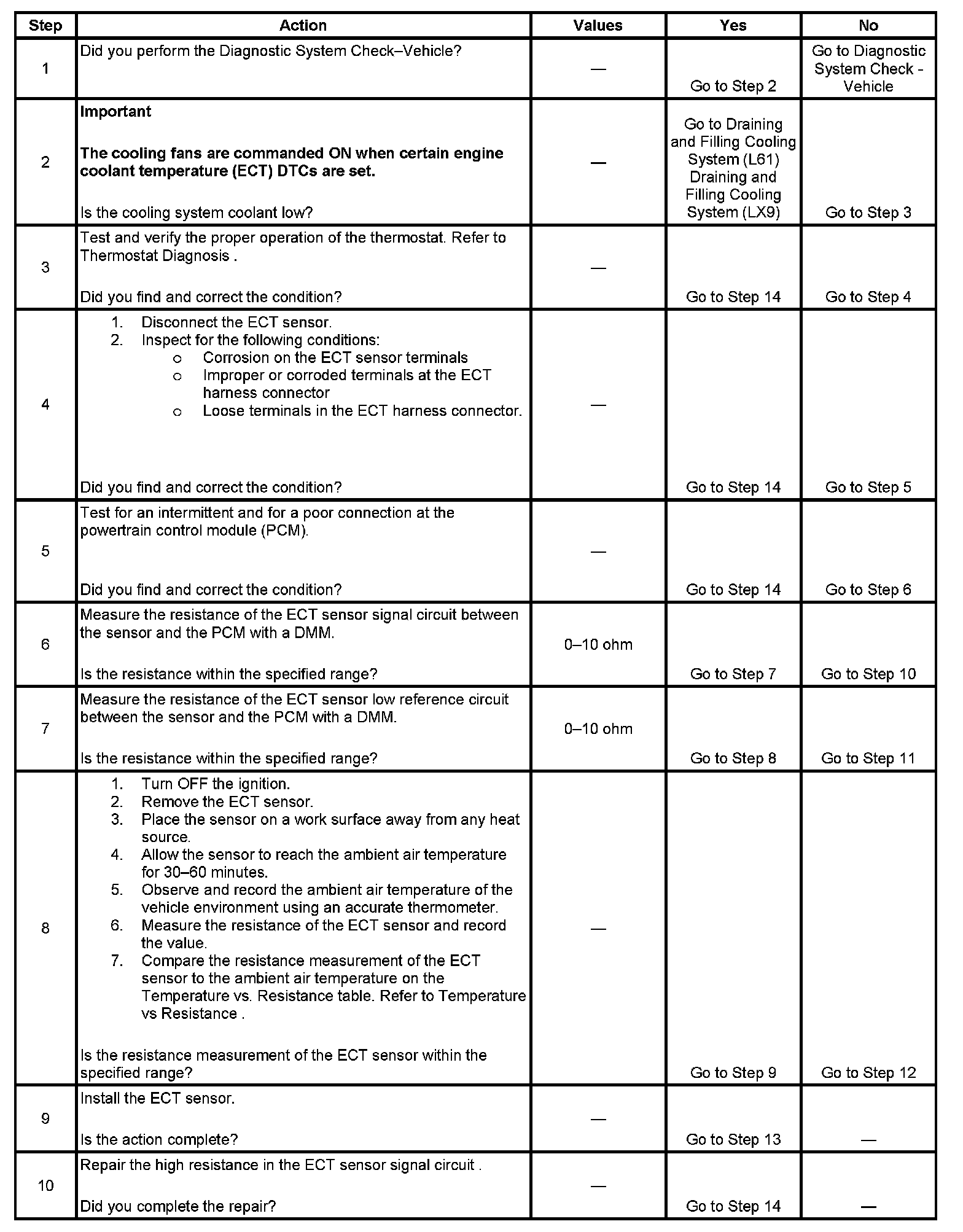 An engine coolant temperature (ECT) sensor monitors the temperature of the coolant. This input is used by the powertrain control module (PCM) for engine control and as an enabling criteria for some diagnostics.