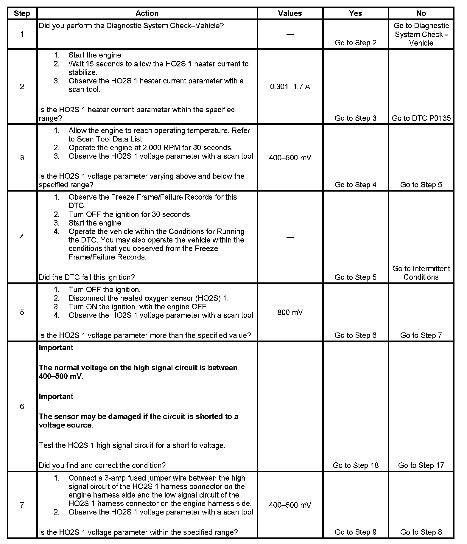 If the PCM detects that the HO2S voltage remains within the bias voltage range, DTC P0134 will set.