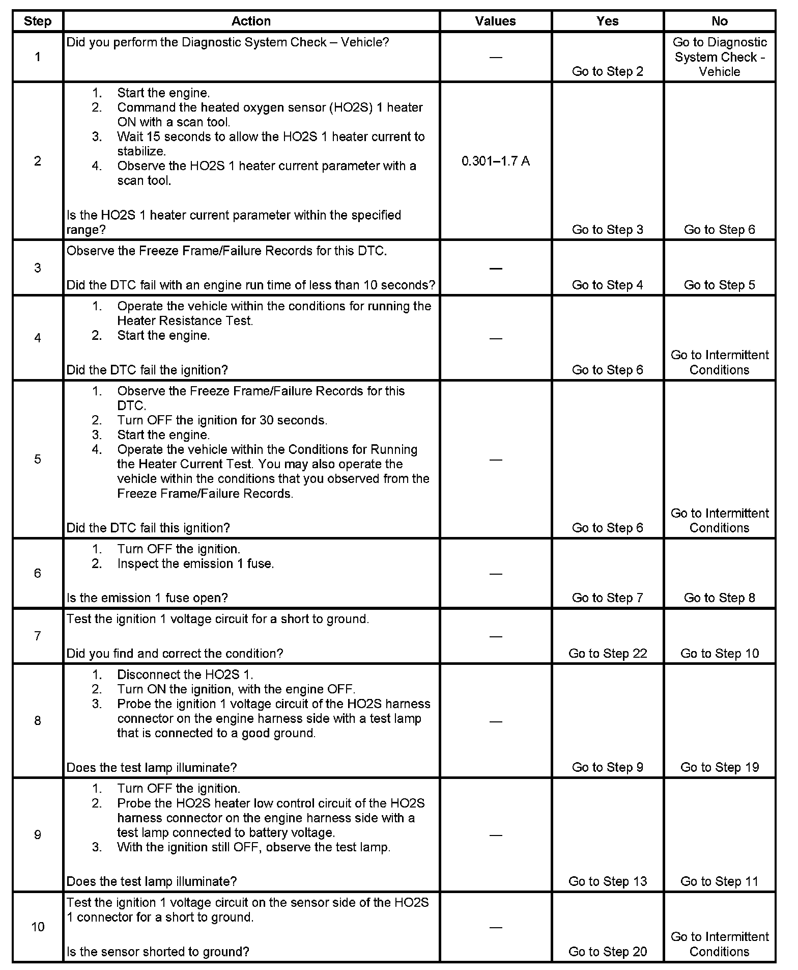 - The PCM detects that the HO2S 1 heater current parameter is more than 1.7 amps or less than 0.301 amps.