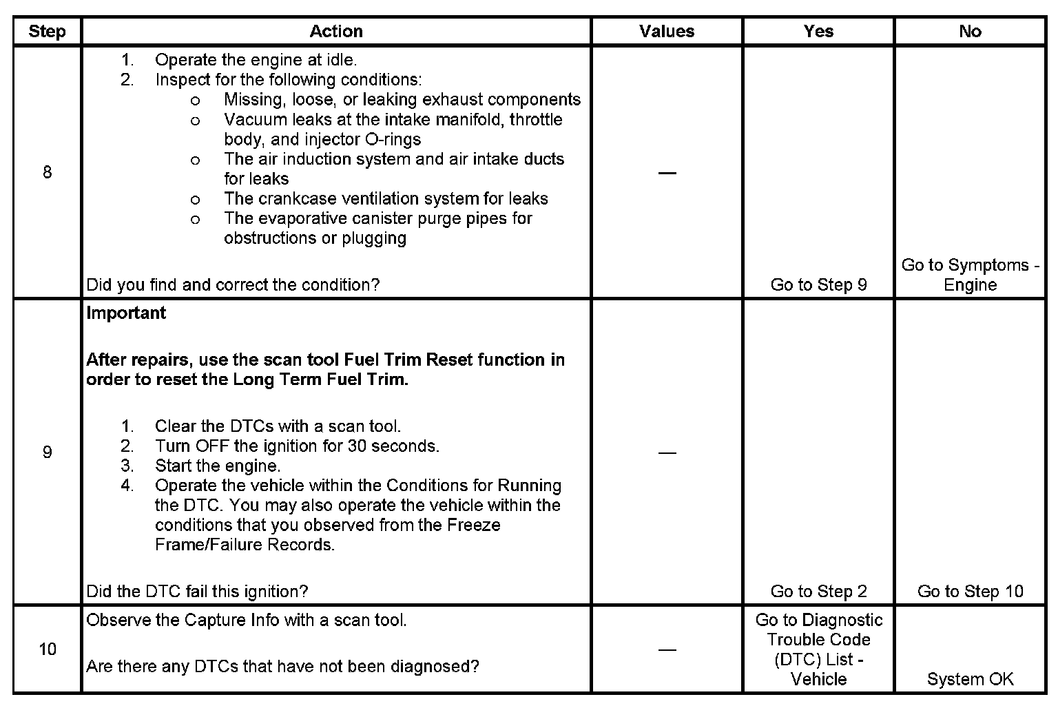 - A current DTC, Last Test Failed, clears when the diagnostic runs and passes.