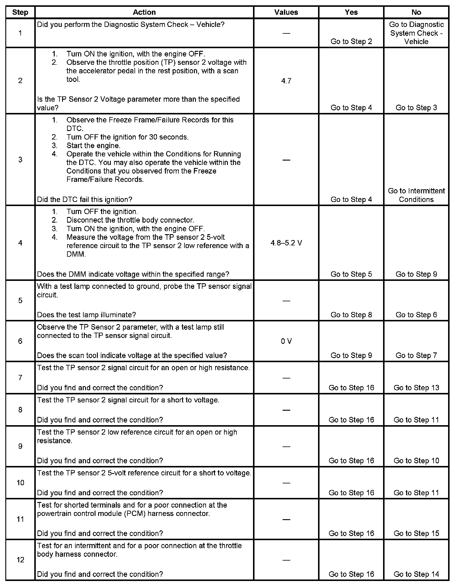 DTC P0223 Throttle Position (TP) Sensor 2 Circuit High Voltage