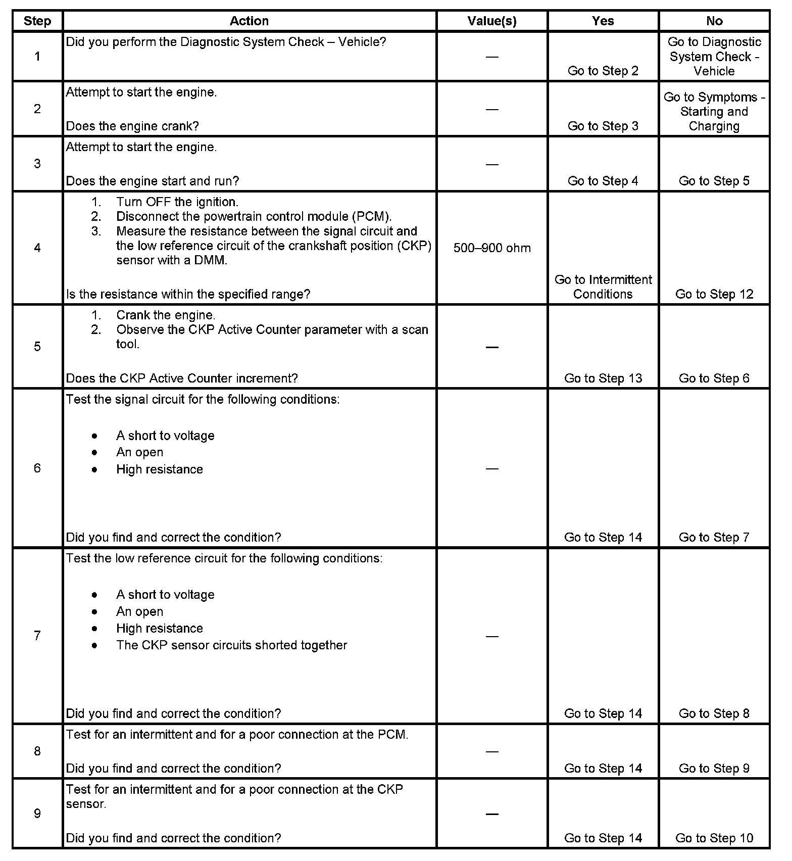 - The PCM detects an incorrect number of CKP pulses during engine cranking for 4 seconds.