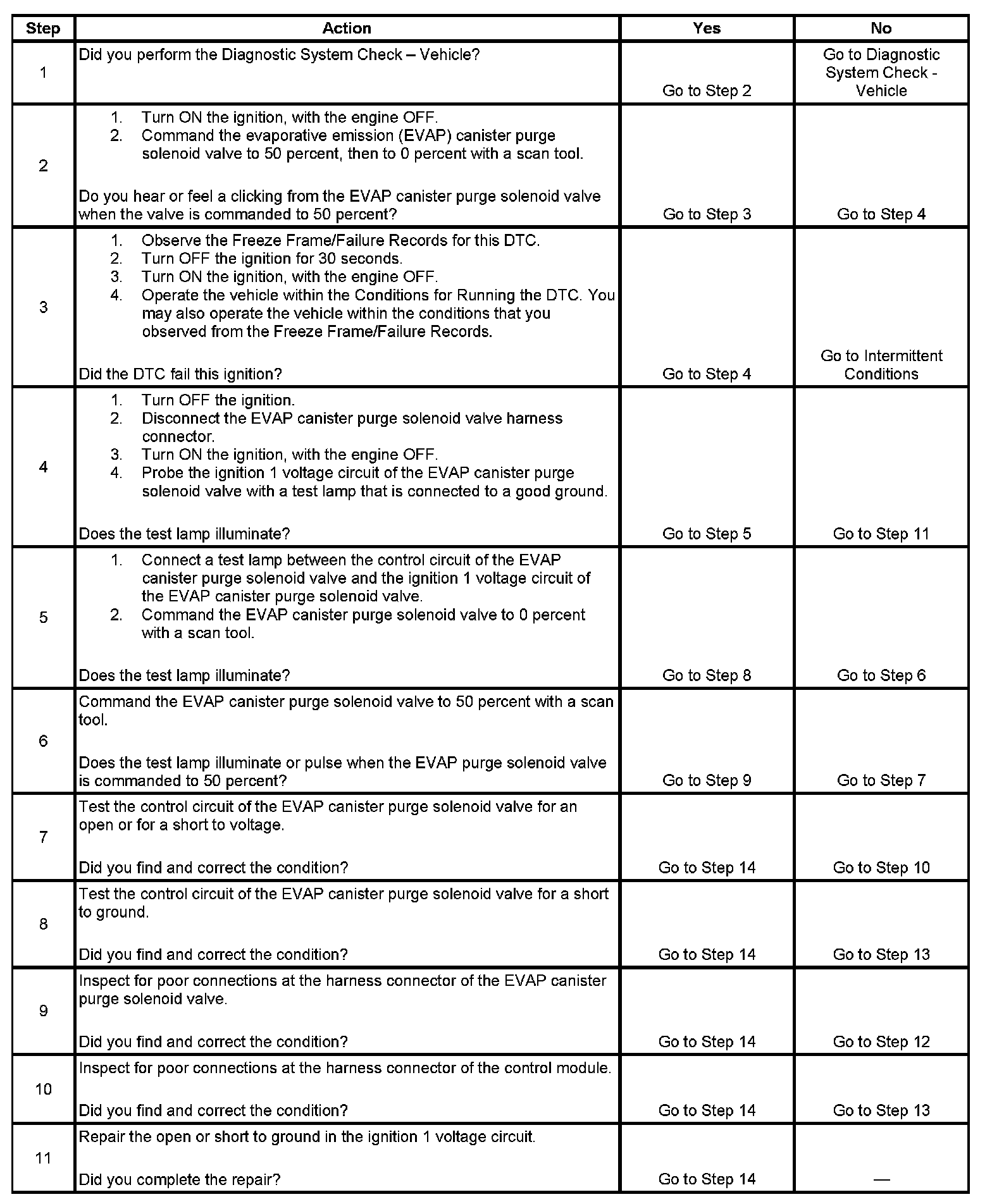 5. This step tests if a ground is constantly being applied to the EVAP canister purge solenoid valve.