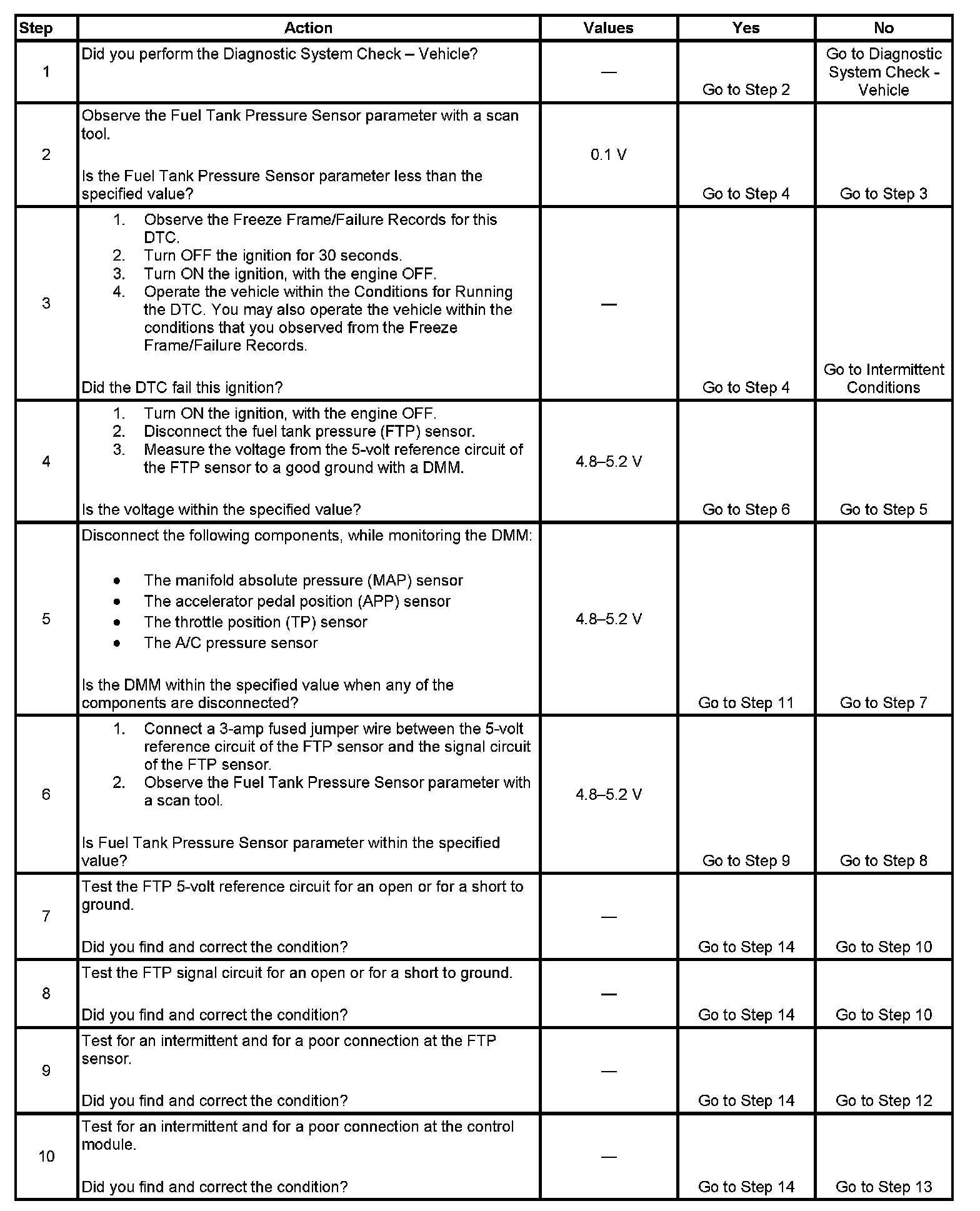 4. This step tests the 5-volt reference of the FTP sensor.