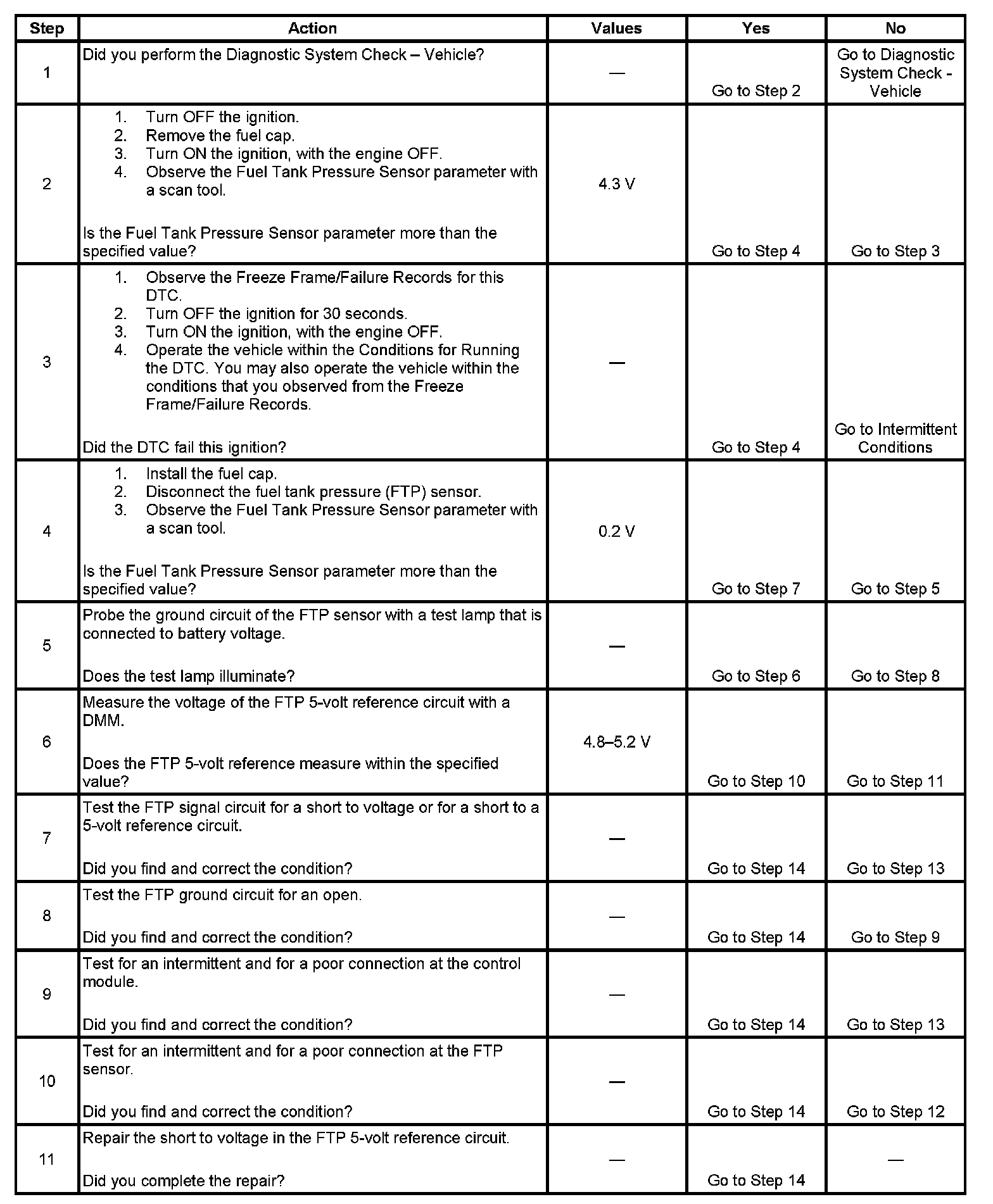 6. This step tests the 5-volt reference circuit of the FTP sensor.