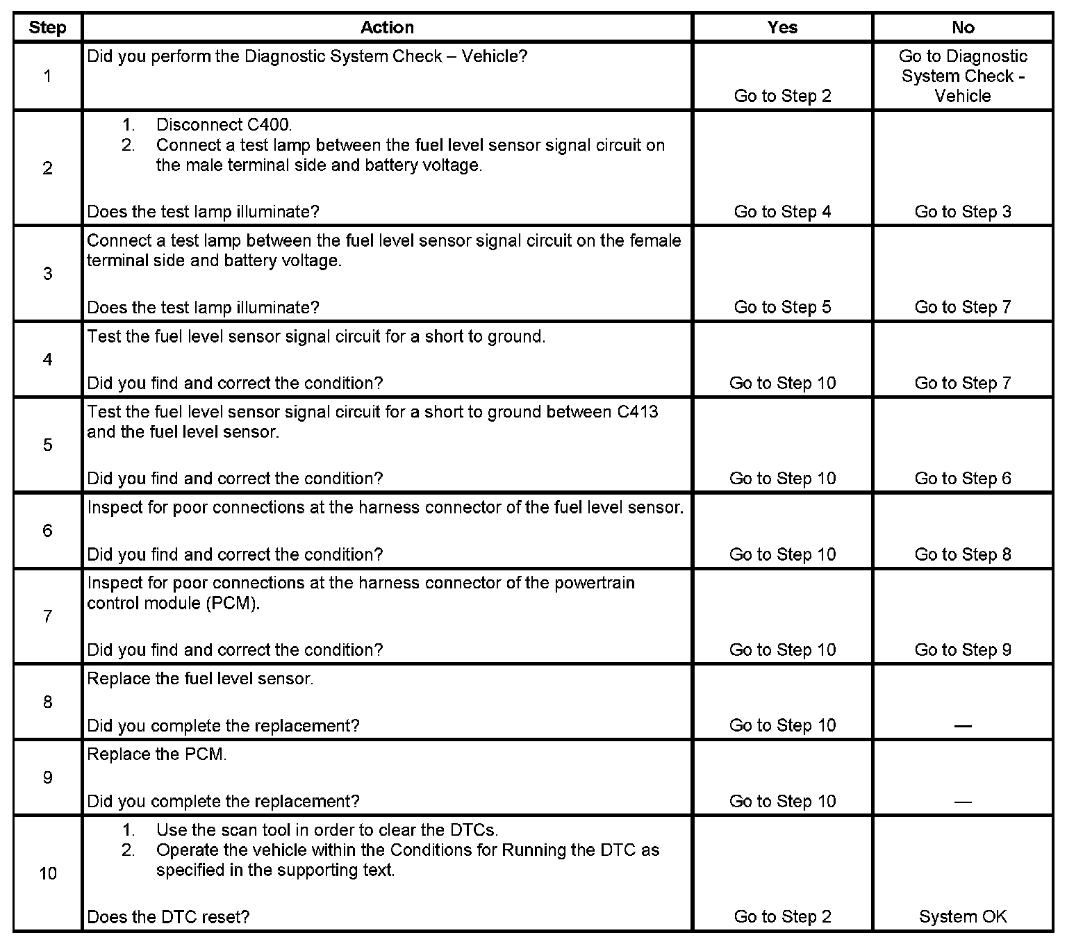 DTC P0462 Fuel Level Sensor Circuit Low Voltage