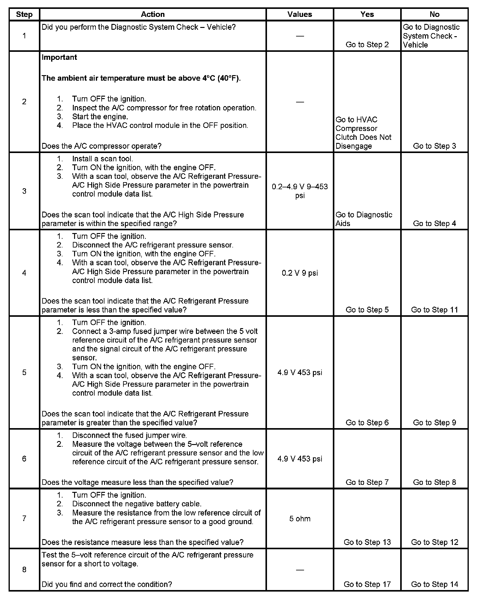 - The PCM detects that the A/C pressure is more than 453 psi (4.92 volts).