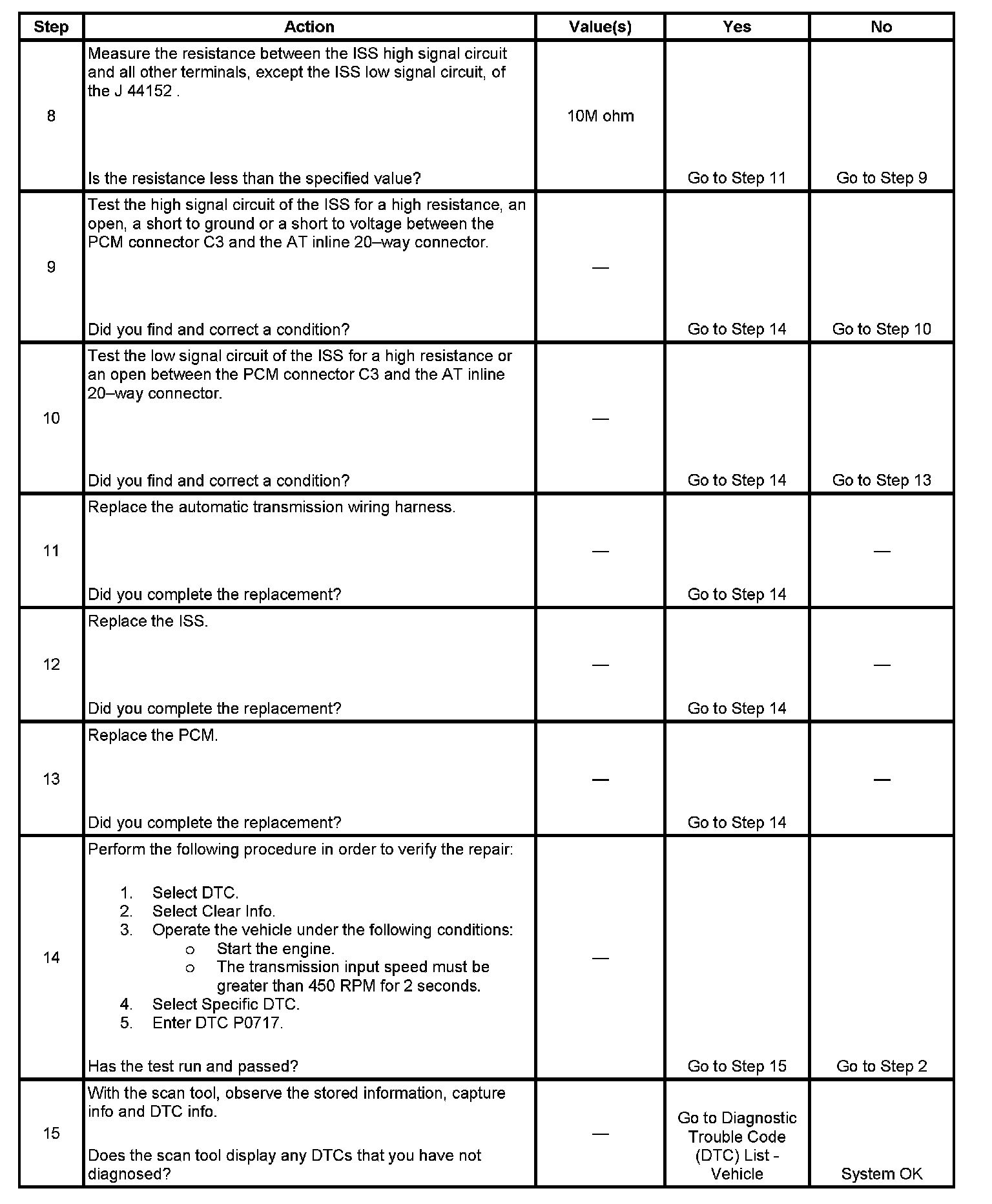 8. This step tests the ISS high signal circuit for being shorted to another circuit within the transmission.