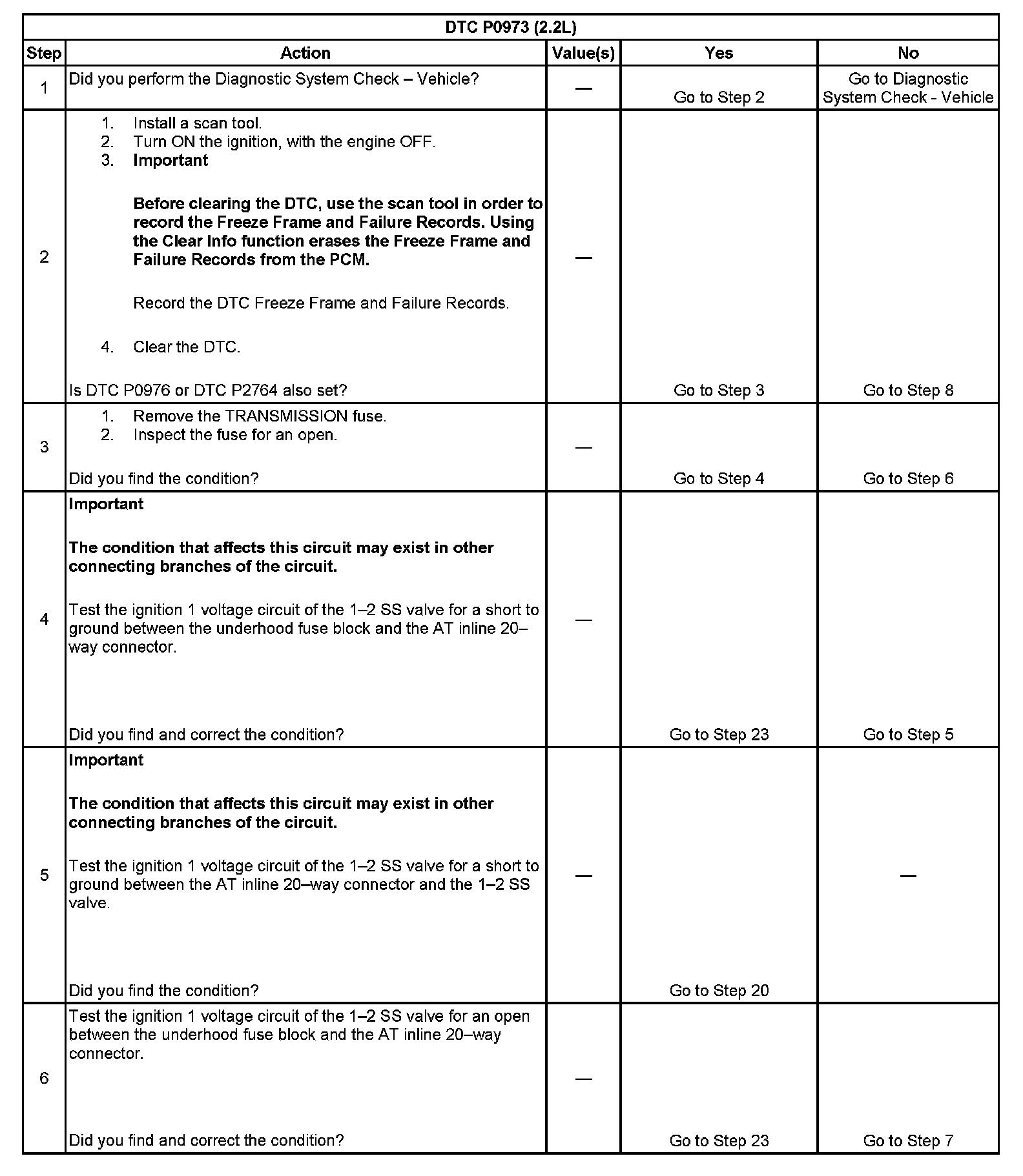 DTC P0973 1-2 Shift Solenoid (SS) Control Circuit Low Voltage
