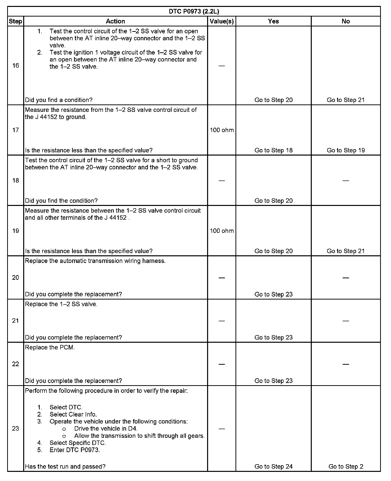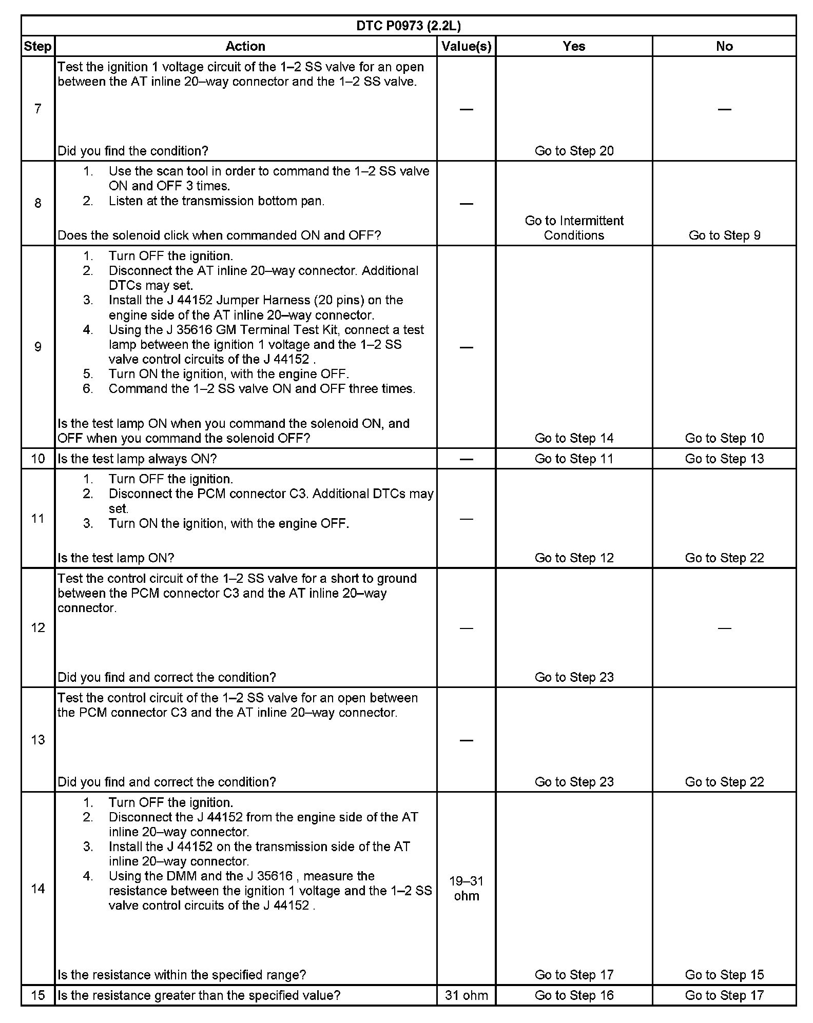 If the PCM detects a continuous open or short to ground in the 1-2 SS valve circuit, then DTC P0973 sets. DTC P0973 is a type A DTC.
