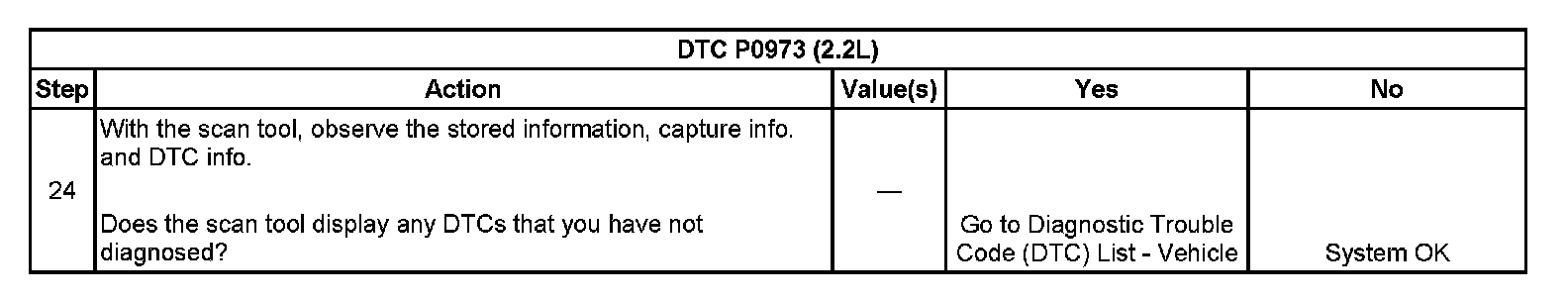 ^ The PCM stores DTC P0973 in PCM history during the second consecutive trip in which the Conditions for Setting the DTC are met.