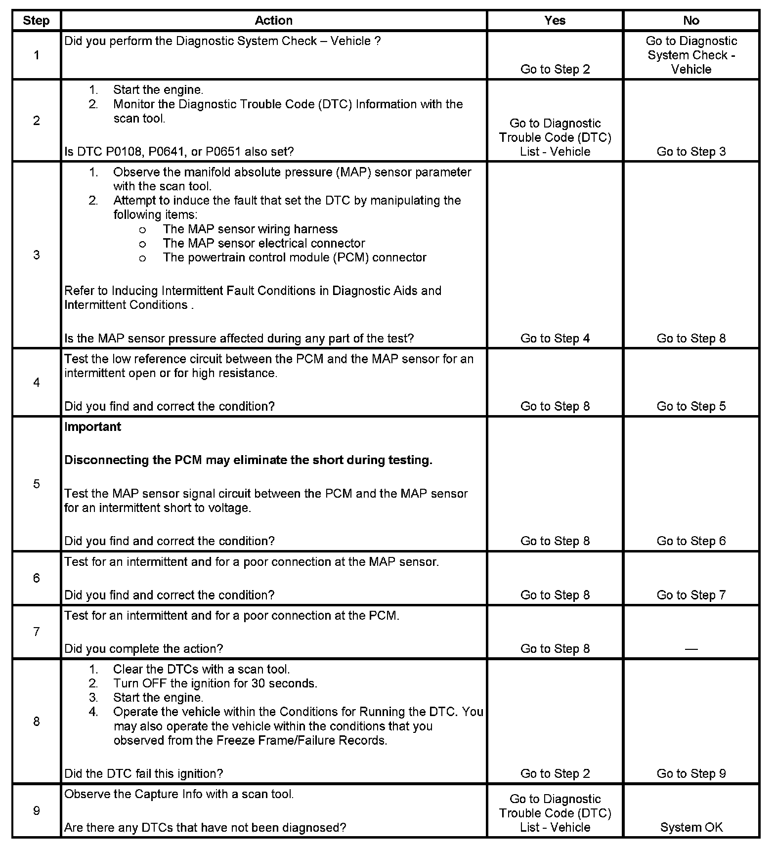 DTC P1106 Manifold Absolute Pressure (MAP) Sensor Circuit Intermittent High Voltage