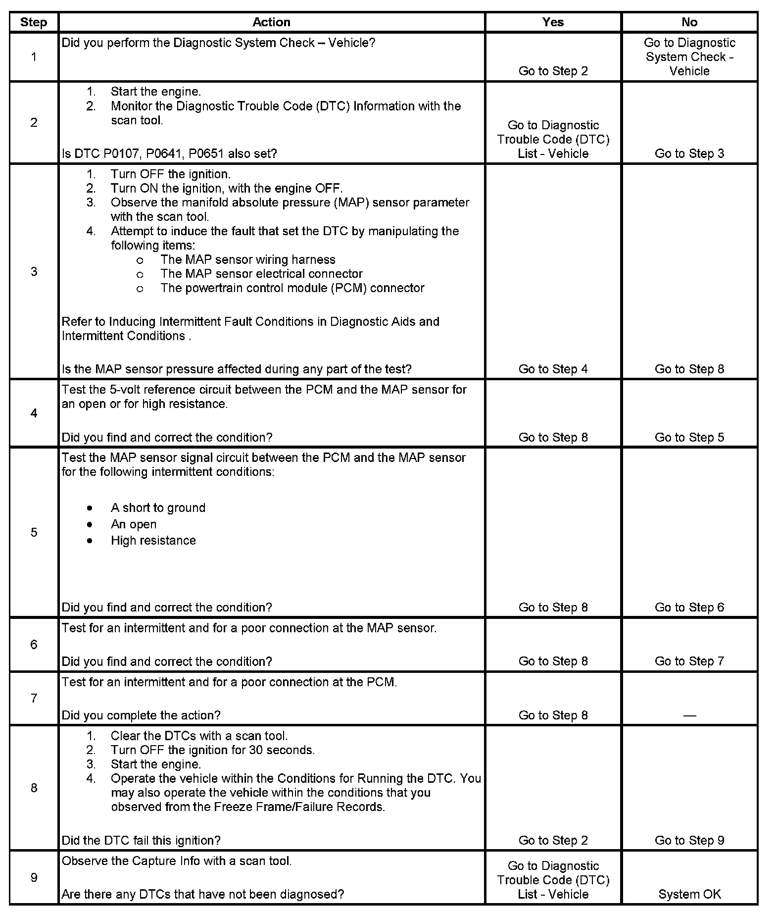 DTC P1107 Manifold Absolute Pressure (MAP) Sensor Circuit Intermittent Low Voltage.