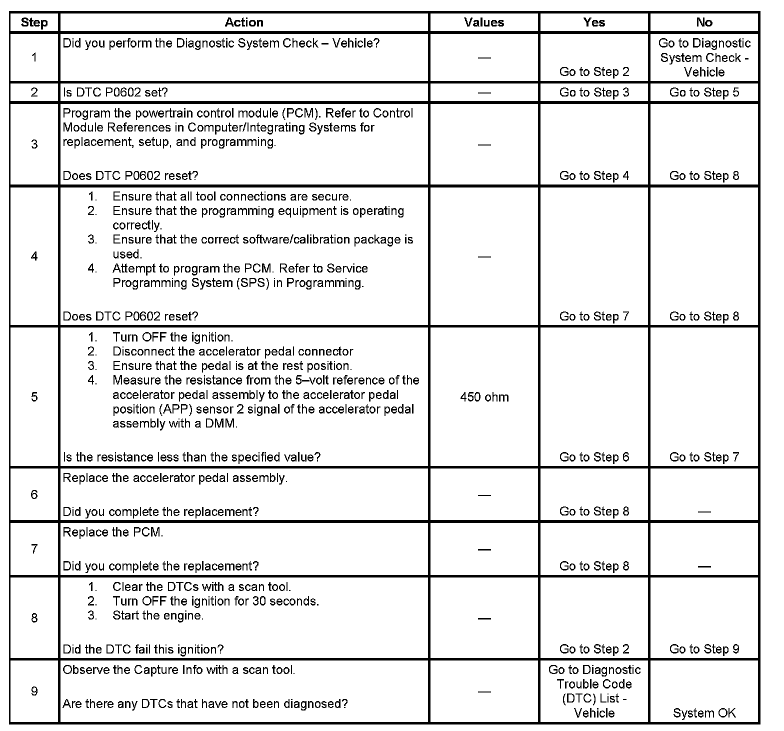 2. A DTC P0602 indicates that the PCM is not programmed.