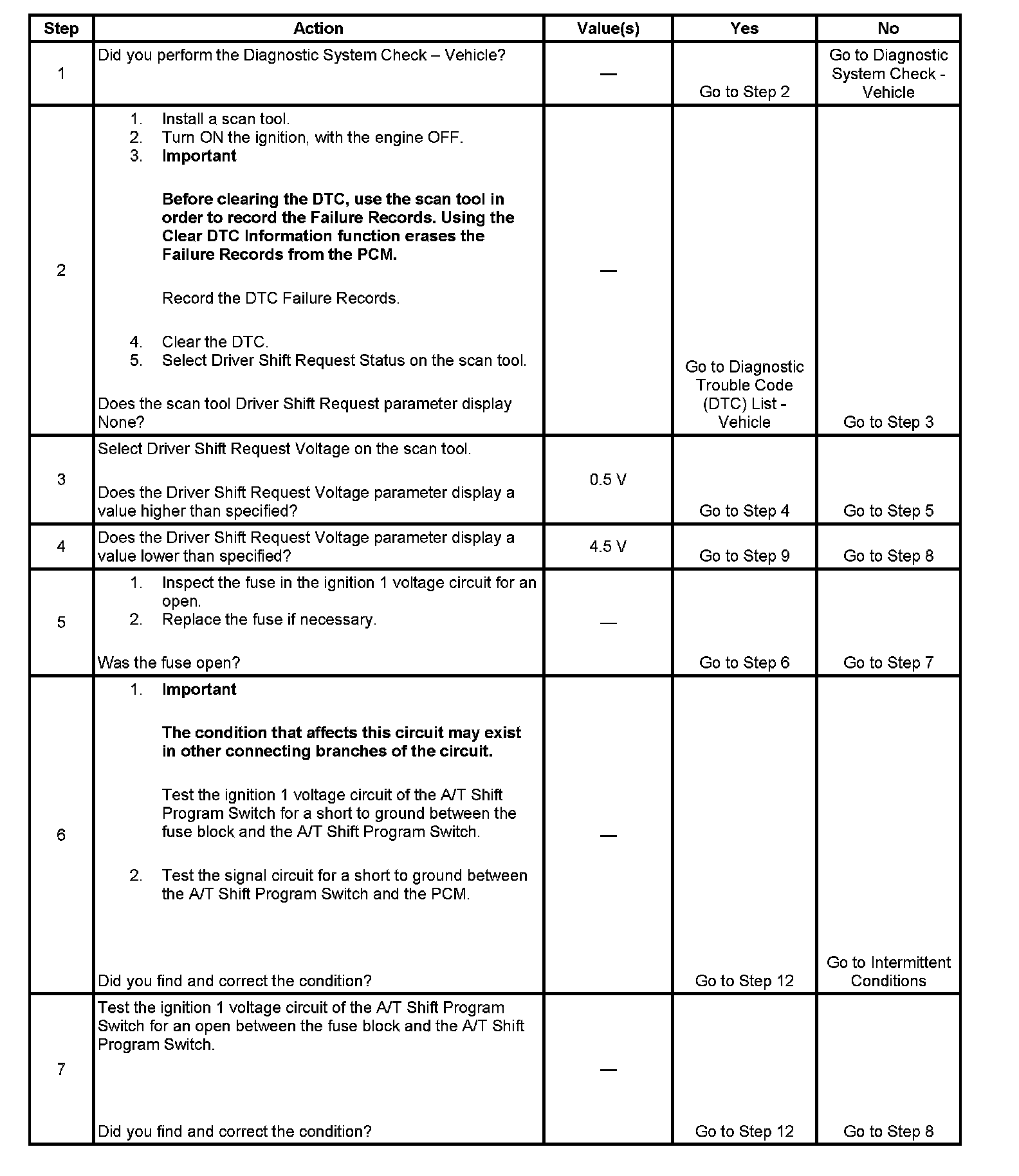 ^ The PCM records the operating conditions when the Conditions for Setting the DTC are met. The PCM stores this information a Failure Record.