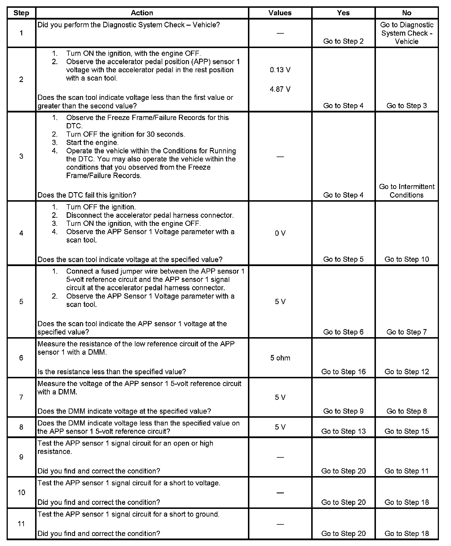 DTC P2120 Accelerator Pedal Position (APP) Sensor 1 Circuit