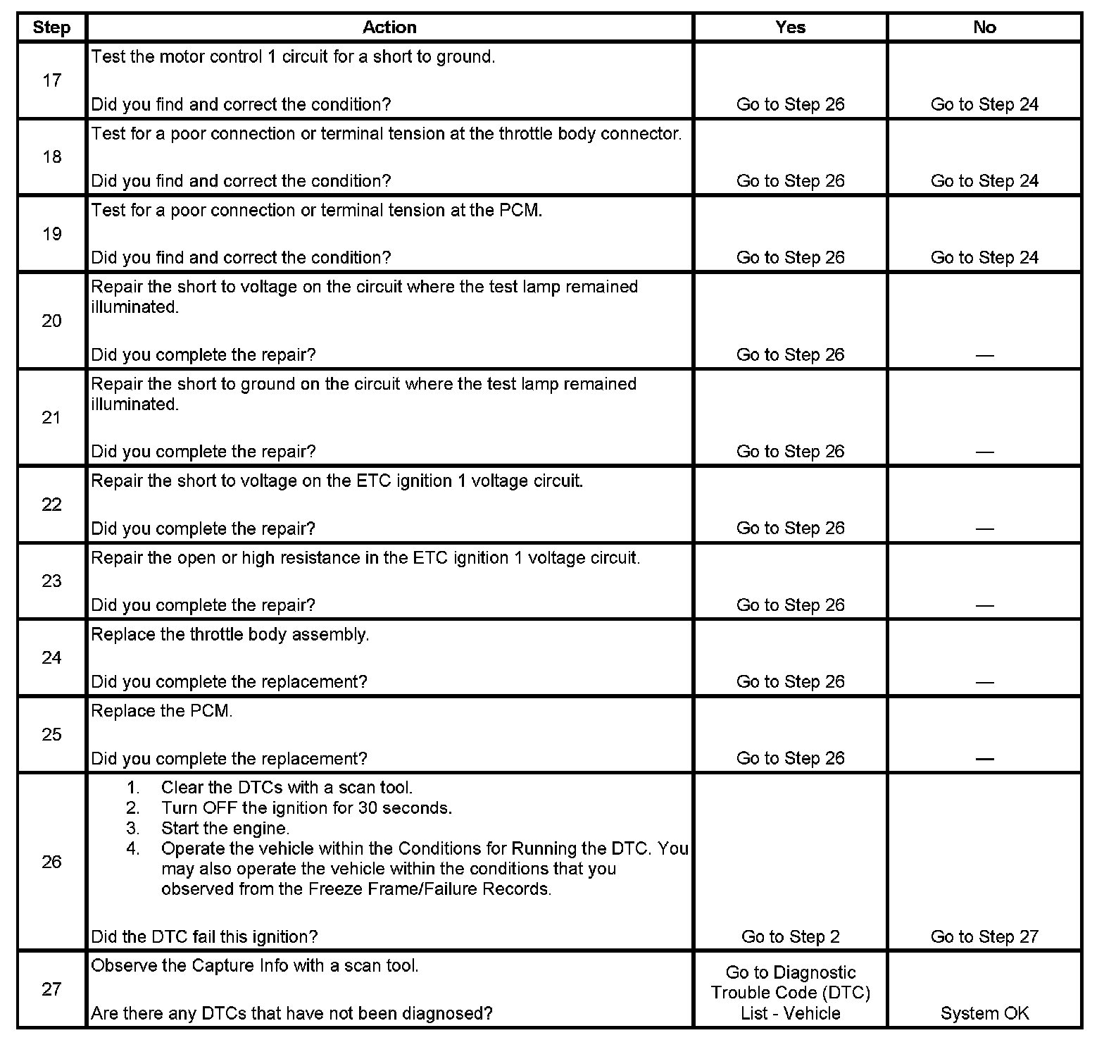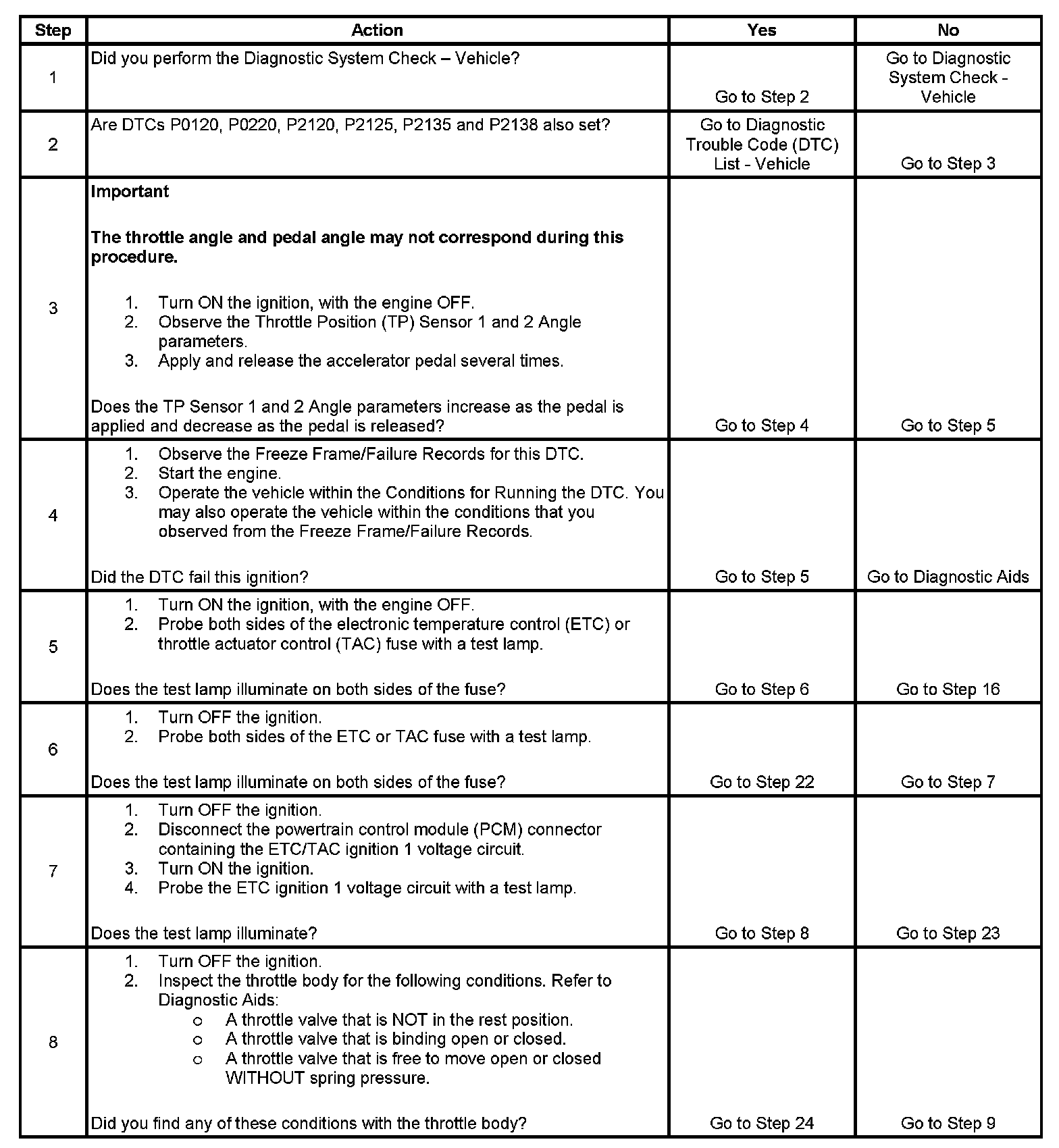 IMPORTANT: Operating the throttle blade with the Throttle Blade Control function of the scan tool may cause additional DTCs to set. Do not attempt to diagnose DTCs set during this function.