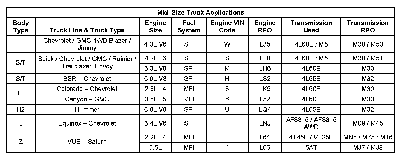 Engine and Transmission Usage (Mid-Size Truck Applications)