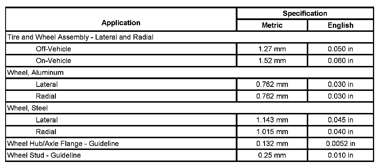 Tire and Wheel Runout Specifications