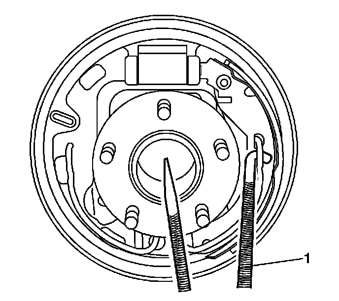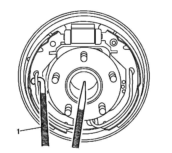 6. Remove the universal spring (1) from the brake backing plate.