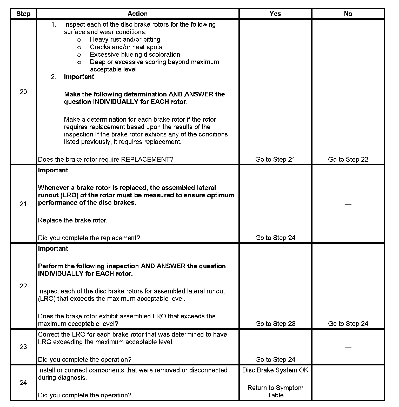22. Disc brake rotor assembled lateral runout (LRO) that exceeds the maximum acceptable level can lead to thickness variation.