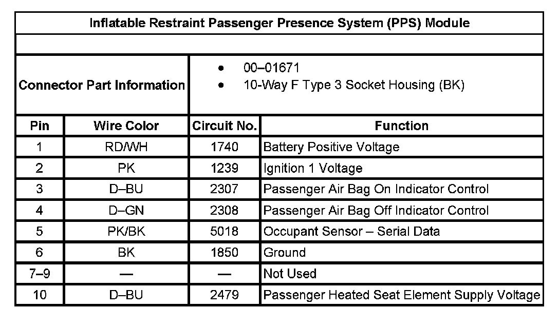 Inflatable Restraint Passenger Presence System (PPS) Module:
