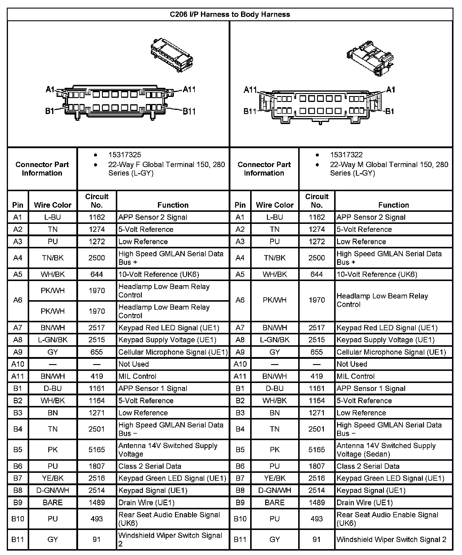 C206 I/P Harness to Body Harness: