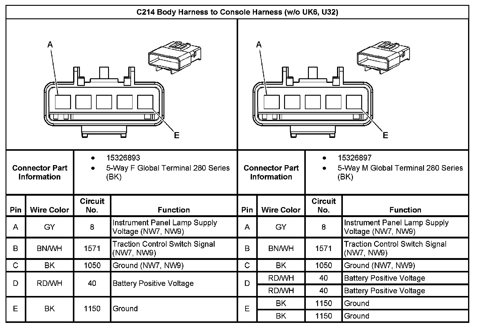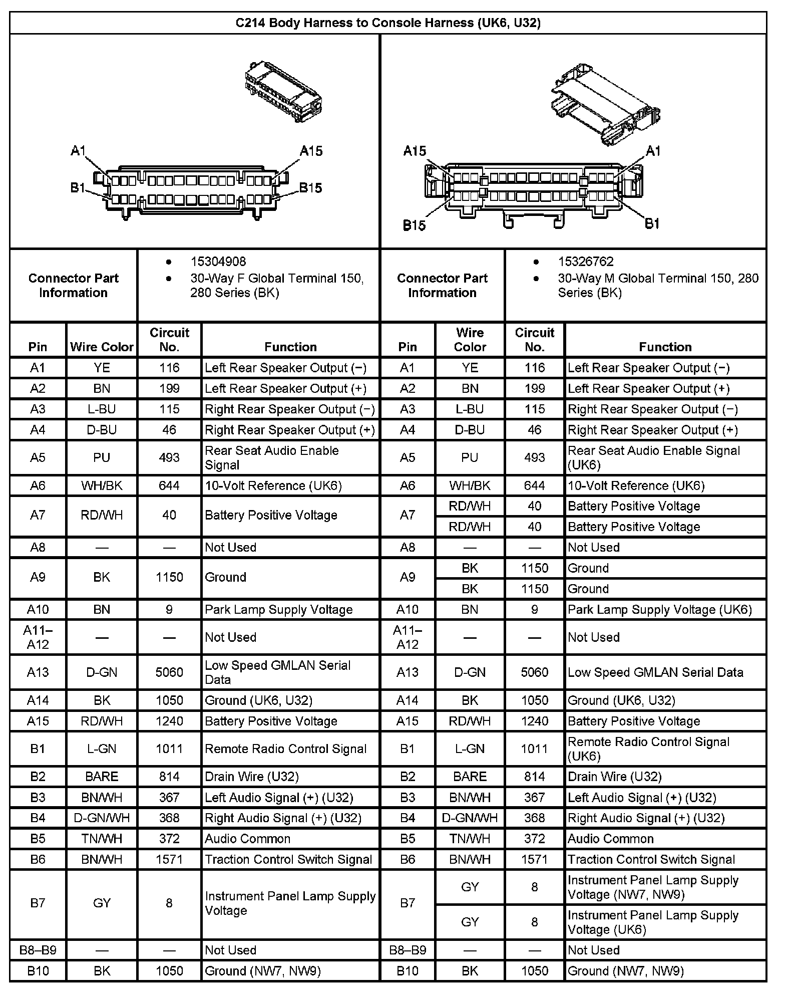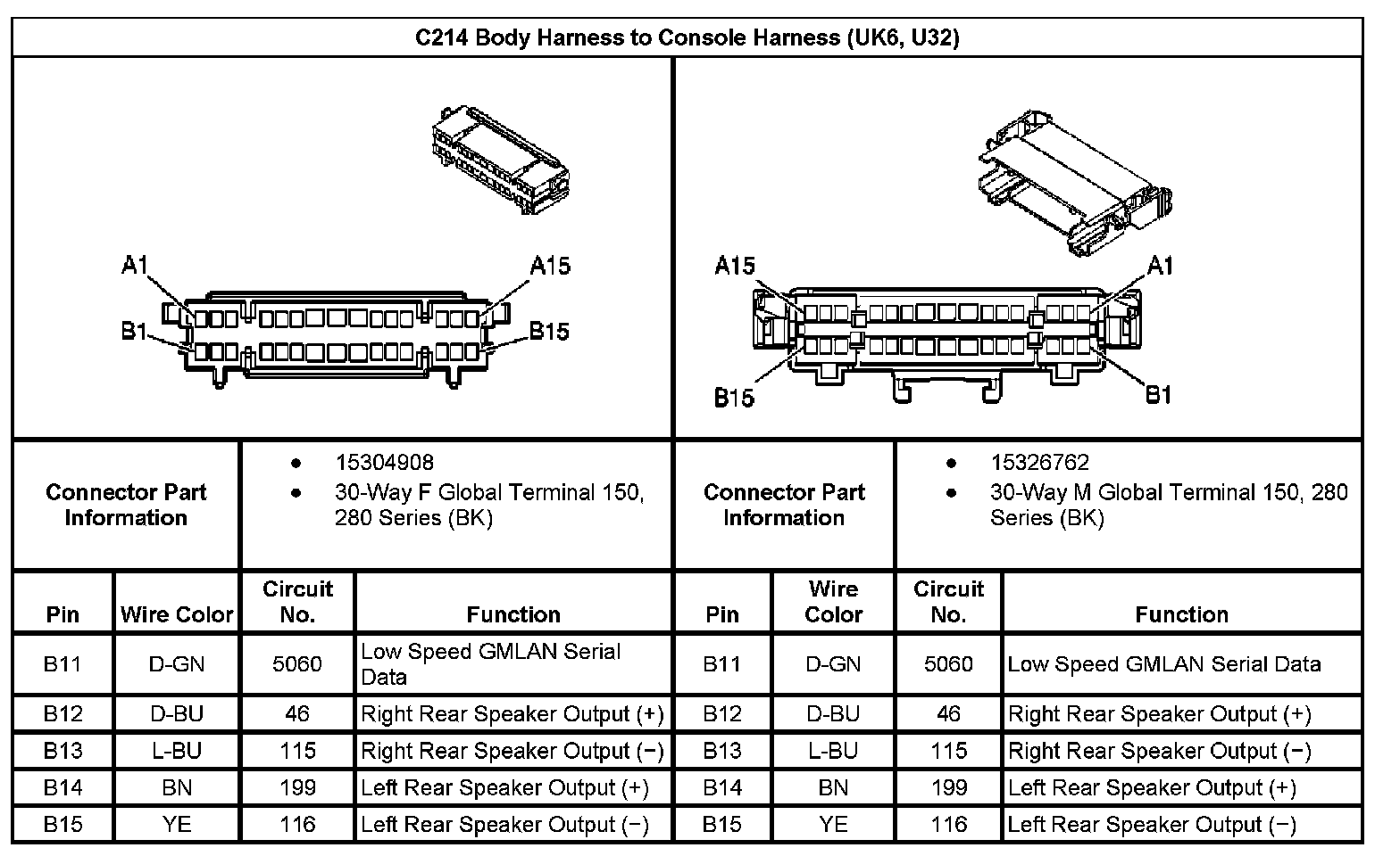 C214 Body Harness to Console Harness(With RPO Code UK6,U32) Part 1: