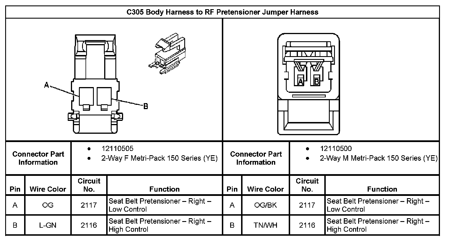 C305 Body Harness to RF Pretensioner Jumper Harness: