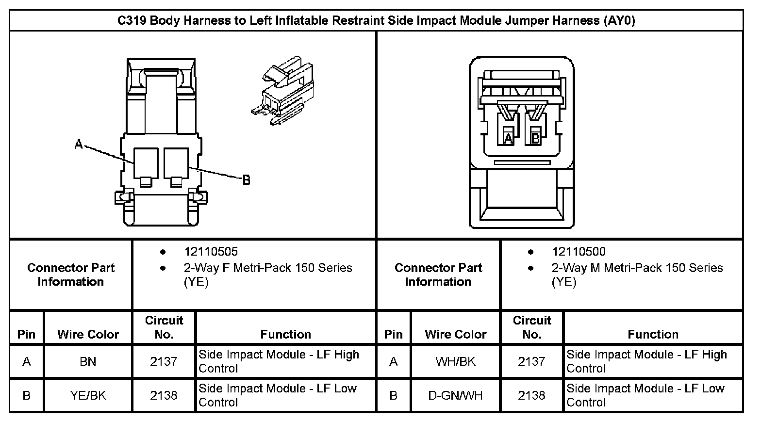 C319 Body Harness to Left Inflatable Restraint Side Impact Module Jumper Harness (With RPO Code AY0):
