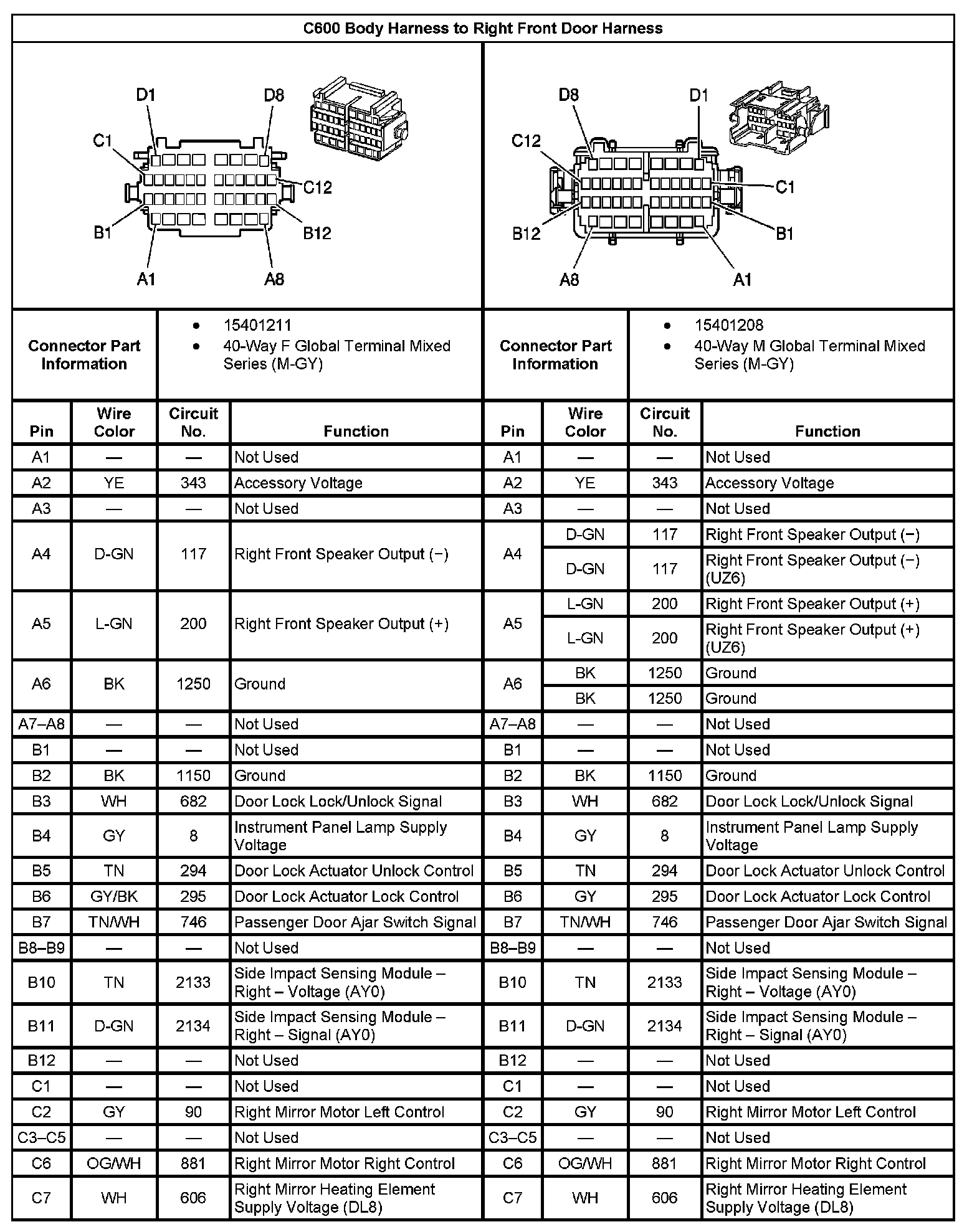 C600 Body Harness to Right Front Door Harness Part 1: