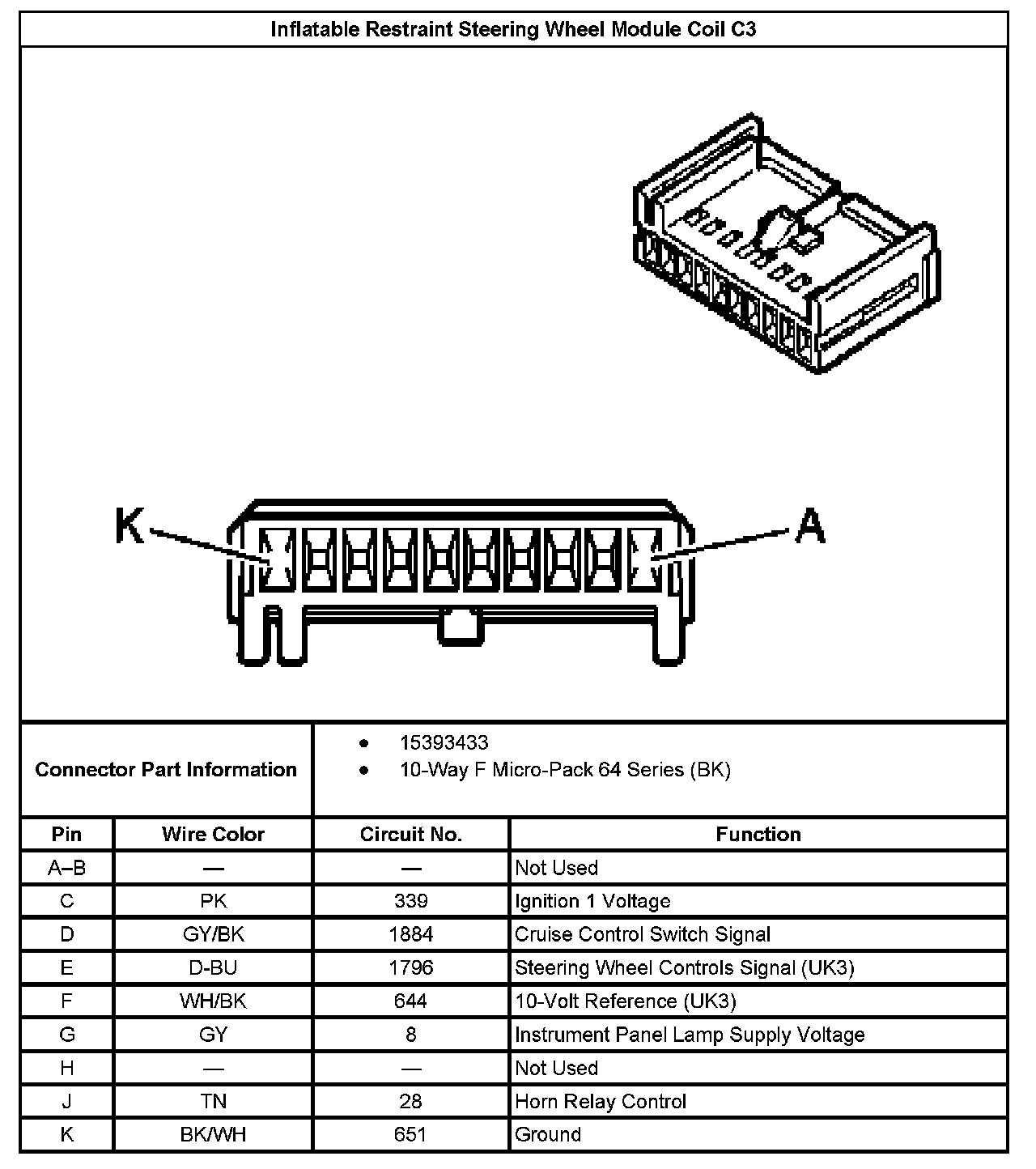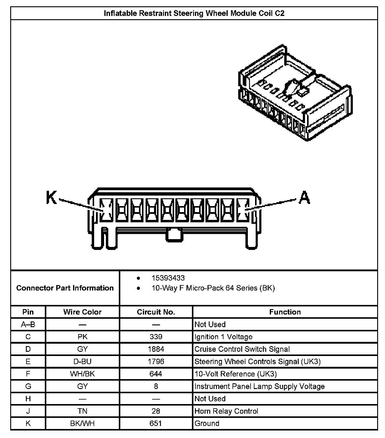 Inflatable Restraint Steering Wheel Module Coil C1: