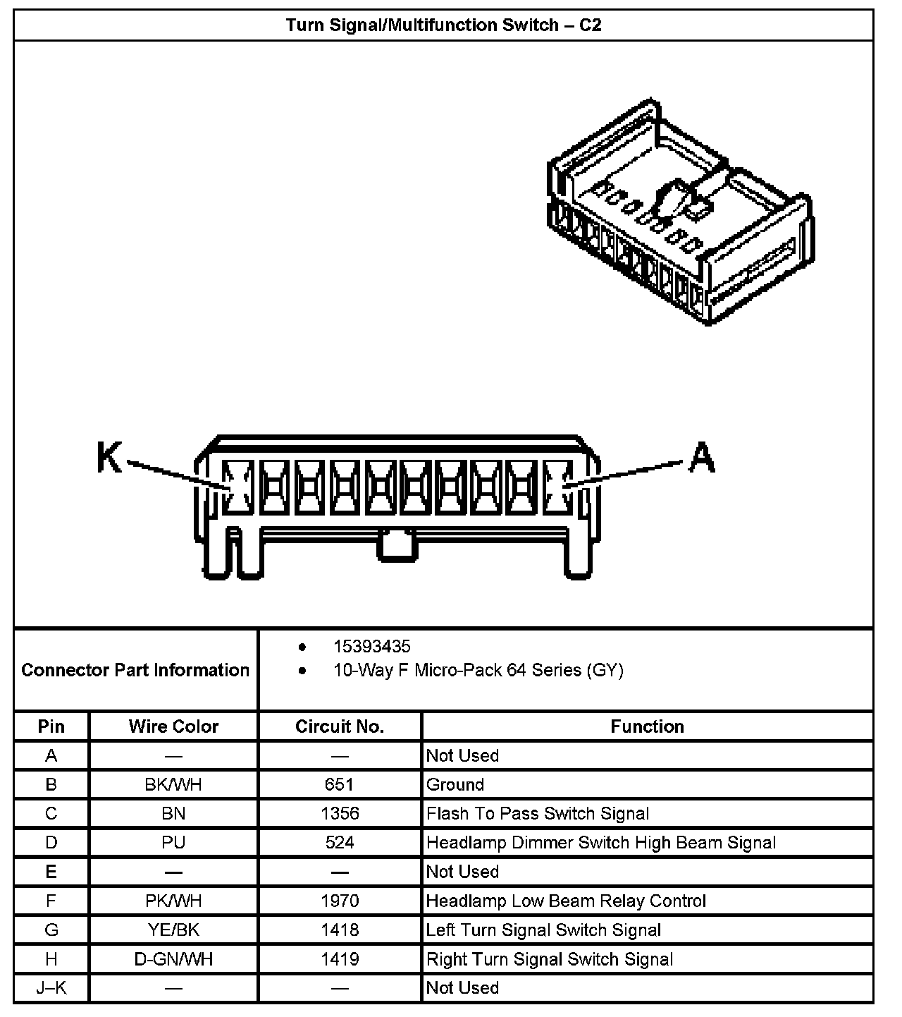 Turn Signal/Multifunction Switch - C2: