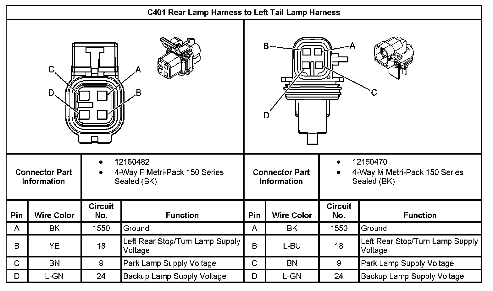 C401 Rear Lamp Harness to Left Tail Lamp Harness: