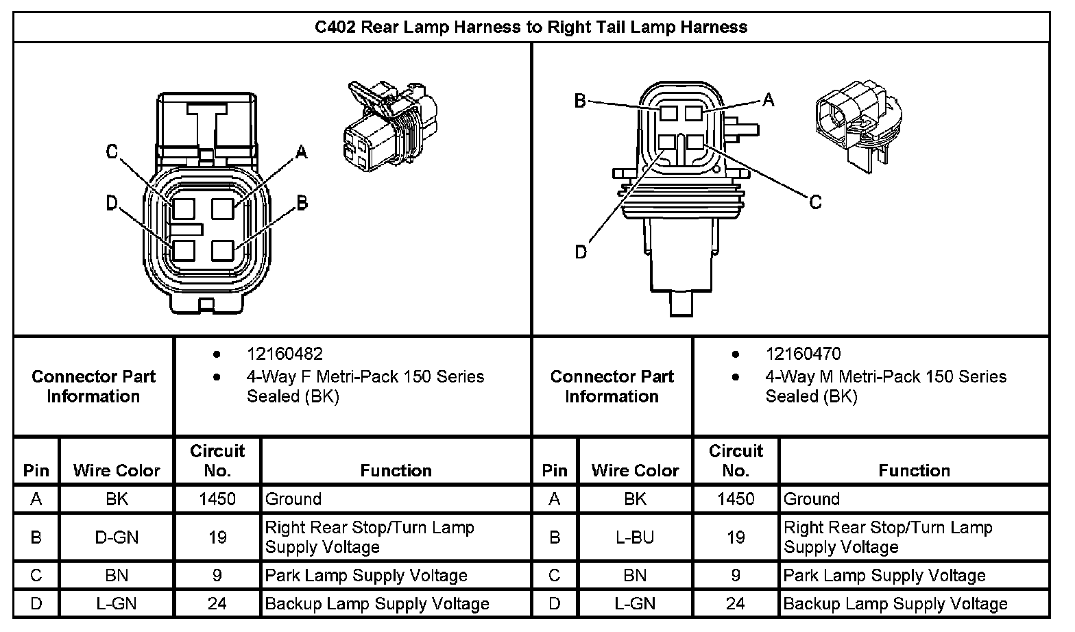 C402 Rear Lamp Harness to Right Tail Lamp Harness: