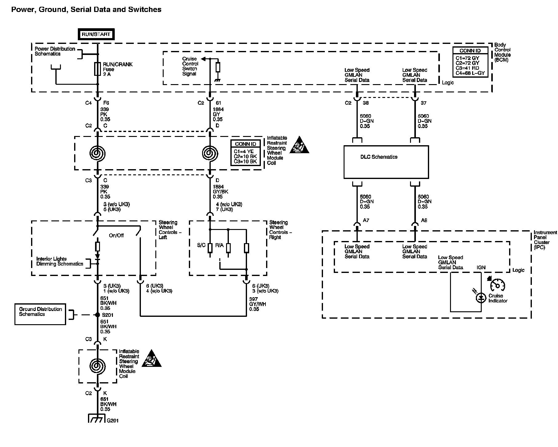 The locations for the Connectors, Grounds, Splices, and Grommets shown within these diagrams can be found via their numbers at Vehicle Locations.
