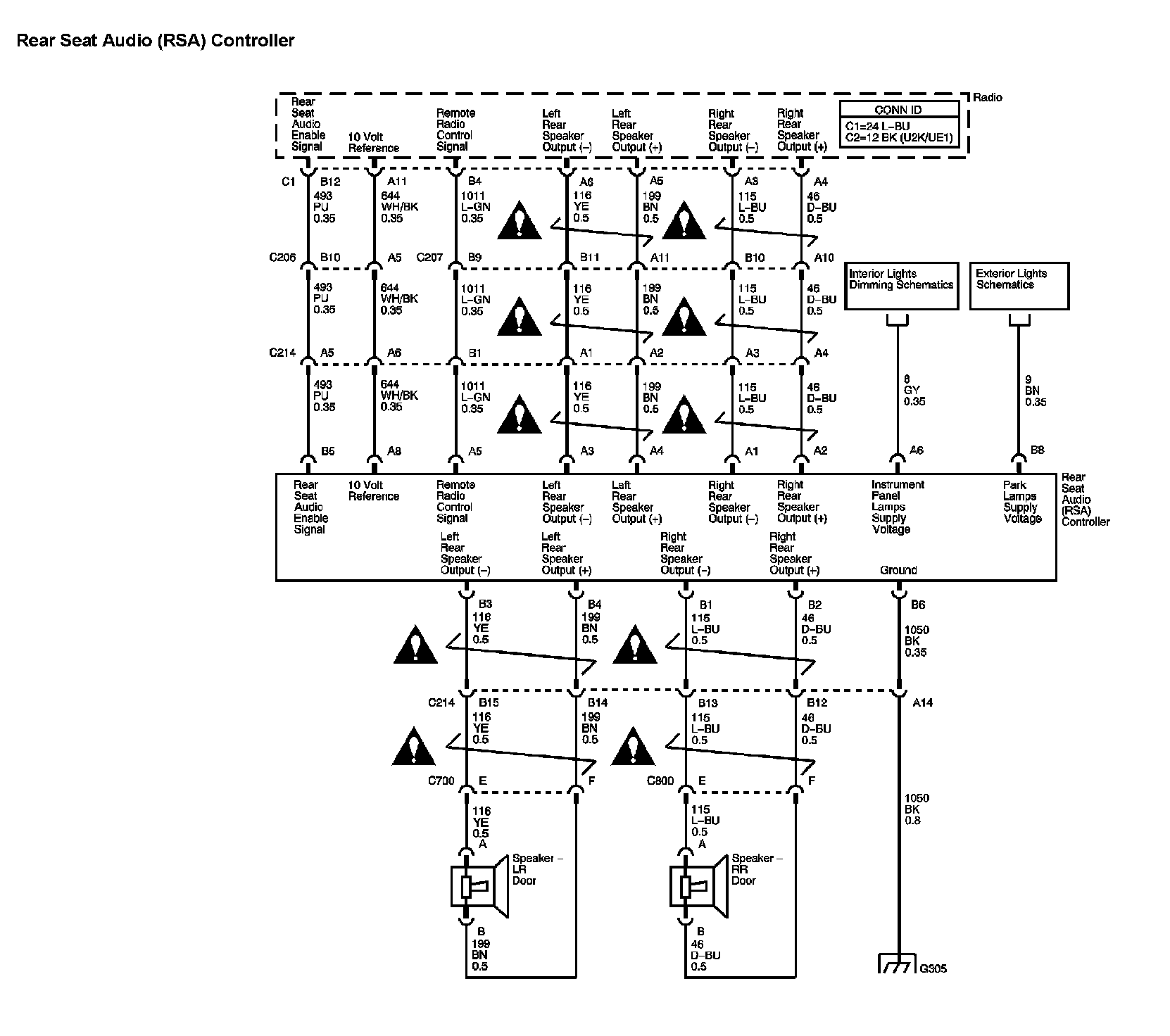 Locations: The locations for the Connectors, Grounds, Splices, and Grommets shown within these diagrams can be found via their numbers at Vehicle Locations. Locations