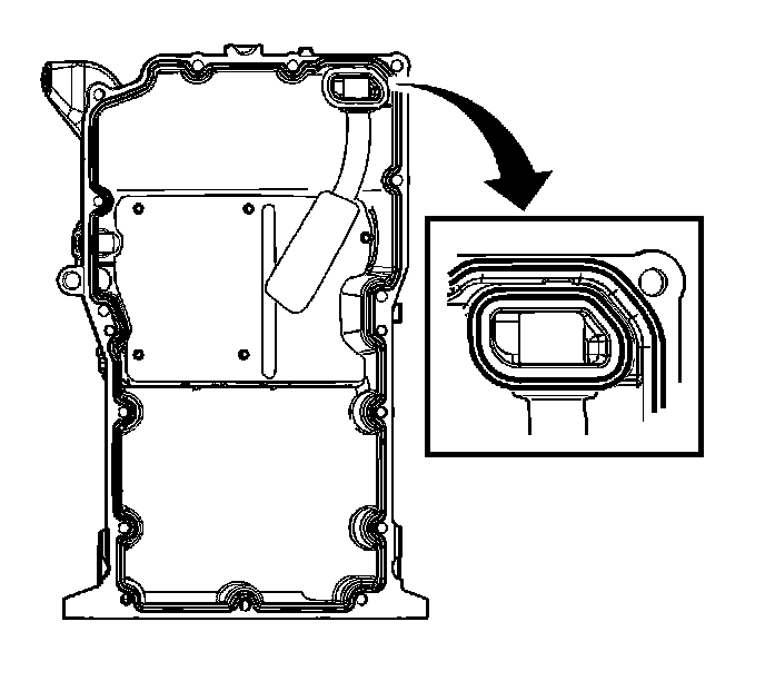 2. Apply a 2 mm bead of GM P/N 12346286 (Canadian P/N 10953472) around the perimeter of the oil pan and the oil suction port opening. Do not over apply the RTV. More than a 2 mm bead is not required.