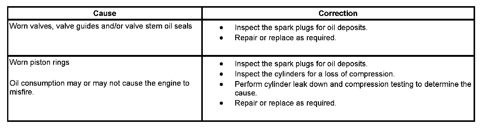Base Engine Misfire With Excessive Oil Consumption