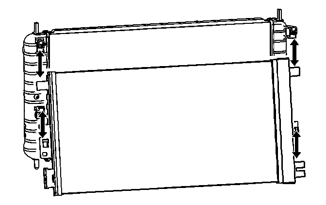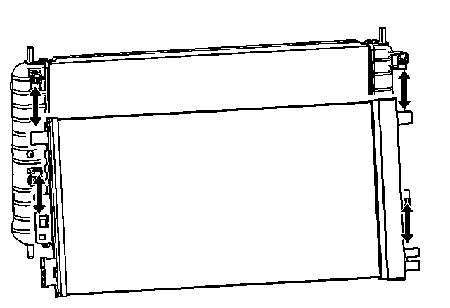 22. Push upward on the radiator and downward on the condenser to unsnap the condenser mounting tabs from the radiator clip.