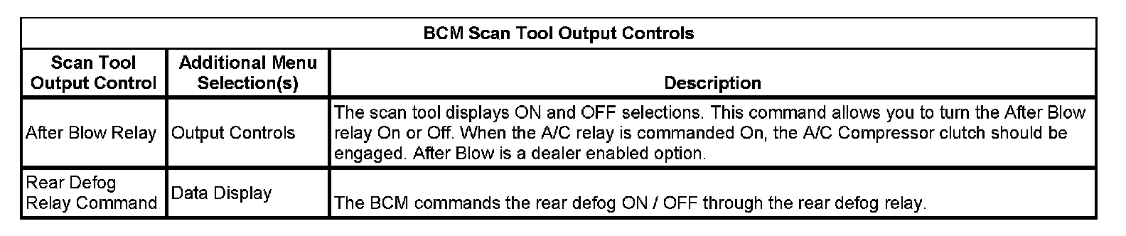 BCM Scan Tool Output Controls:
