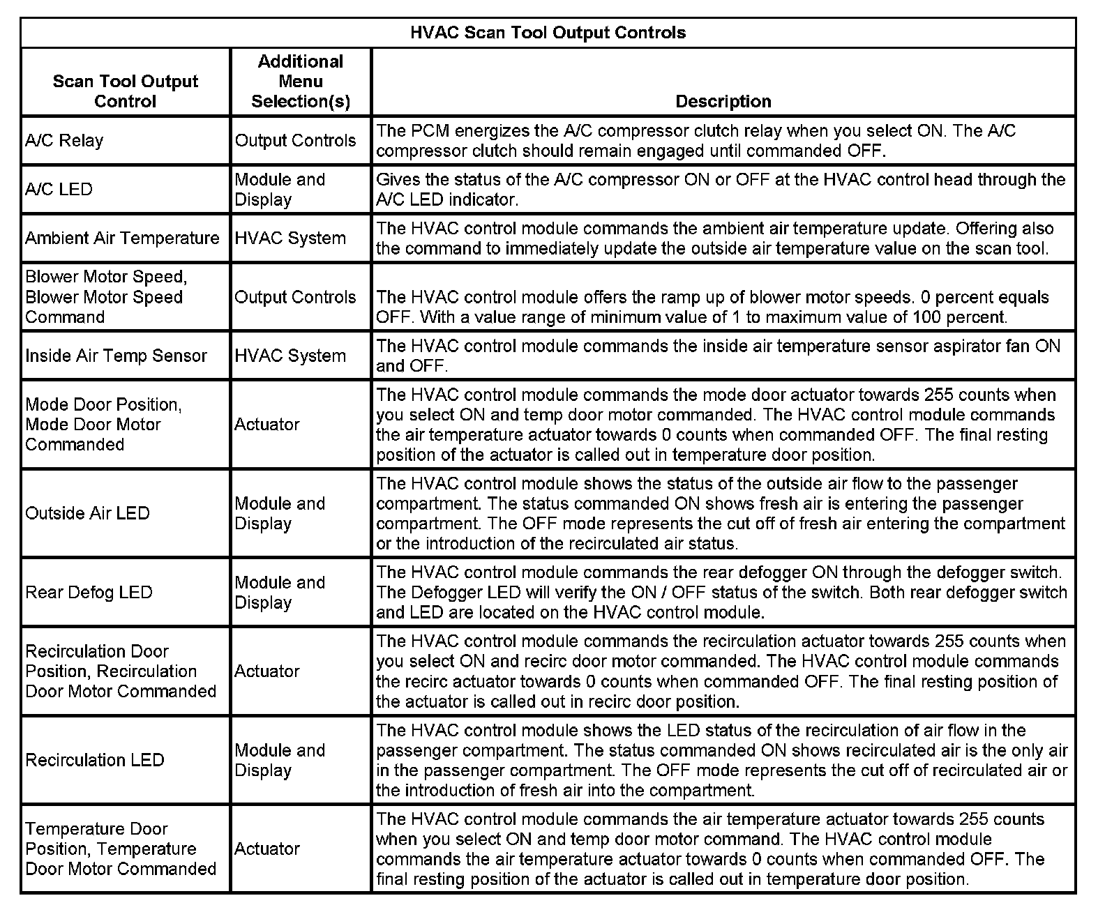 HVAC Scan Tool Output Controls: