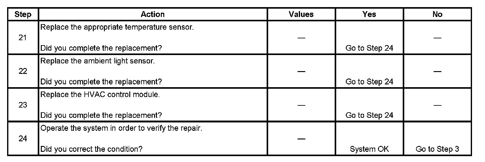 2. This test resets HVAC control module and checks for current air temperature actuator DTC.