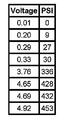 Refer to the table for reference of air conditioning (A/C) refrigerant high side pressure sensor signal reading conversion from the DMM voltage value to psi value.