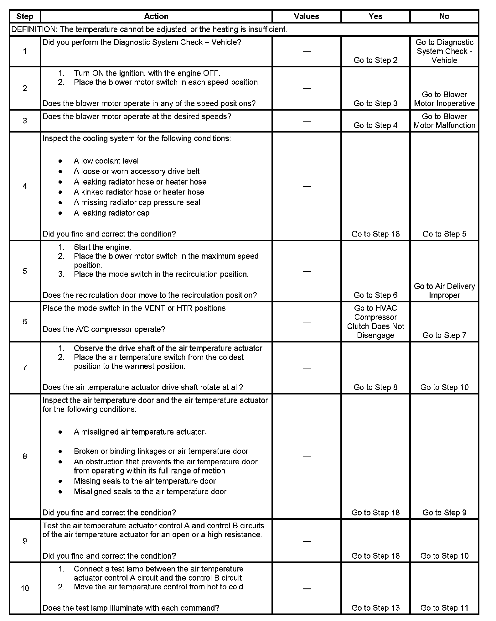Symptoms - HVAC System - Manual