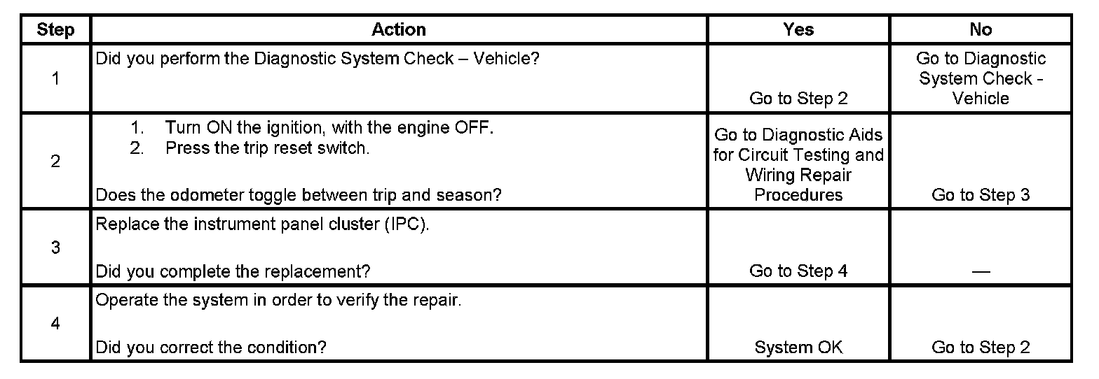 Odometer Trip/Reset Switch Inoperative
