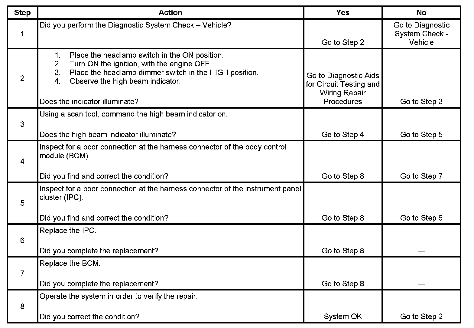 High Beam Indicator Inoperative
