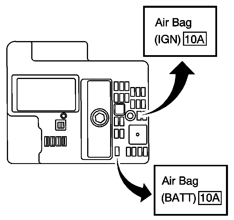 IMPORTANT: This inflatable restraint sensing and diagnostic module (SDM) has two fused power inputs. To ensure there is no unwanted SIR deployment, personal injury, or unnecessary SIR system repairs, remove both AIR BAG (IGN) and AIR BAG (BATT) fuses from the BCM fuse center. With the AIR BAG fuses removed and the ignition switch in the ON position, the AIR BAG warning indicator illuminates. This is normal operation, and does not indicate an SIR system malfunction.